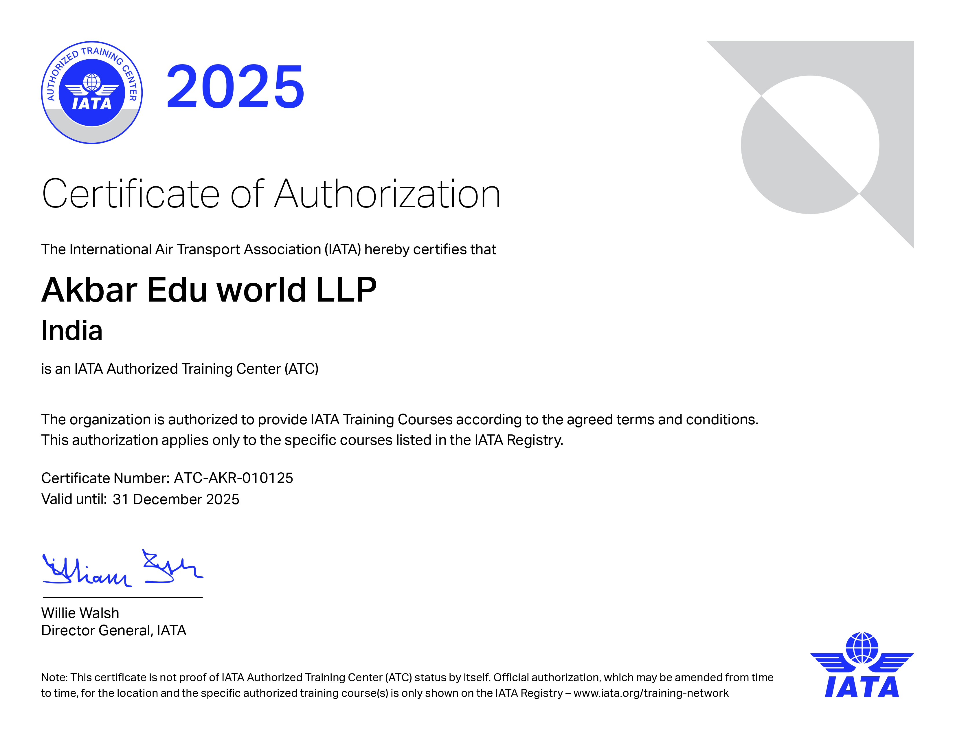 Akbar Academy of Airline Studies is an IATA Authorised Training Centre (ATC), a prestigious recognition awarded only to select aviation institutes worldwide. IATA certifications are globally recognised by airlines, airports, and aviation employers across more than 190 countries.
